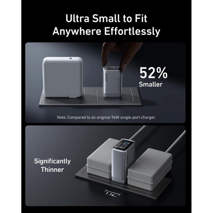 اشحن جميع أجهزتك بكفاءة وسرعة فائقة مع شاحن Prime من Anker بقوة 100 واط، والمزوّد بثلاثة منافذ (منفذا USB‑C ومنفذ USB‑A). تصميمه المدمج والقابل للطي يجعله رفيقك المثالي في المنزل أو أثناء السفر، بينما تكنولوجيا GaN المتقدمة تضمن أداء عالياً ودفئاً أقل. سواء كنت تشحن اللابتوب والأيفون والهاتف اللوحي في وقت واحد أو تحتاج منفذاً رئيسياً بقوة 100 واط، هذا الشاحن يمنحك الحلّ العملي والأنيق. اختره لتجربة شحن موثوقة وأنيقة في آن واحد.