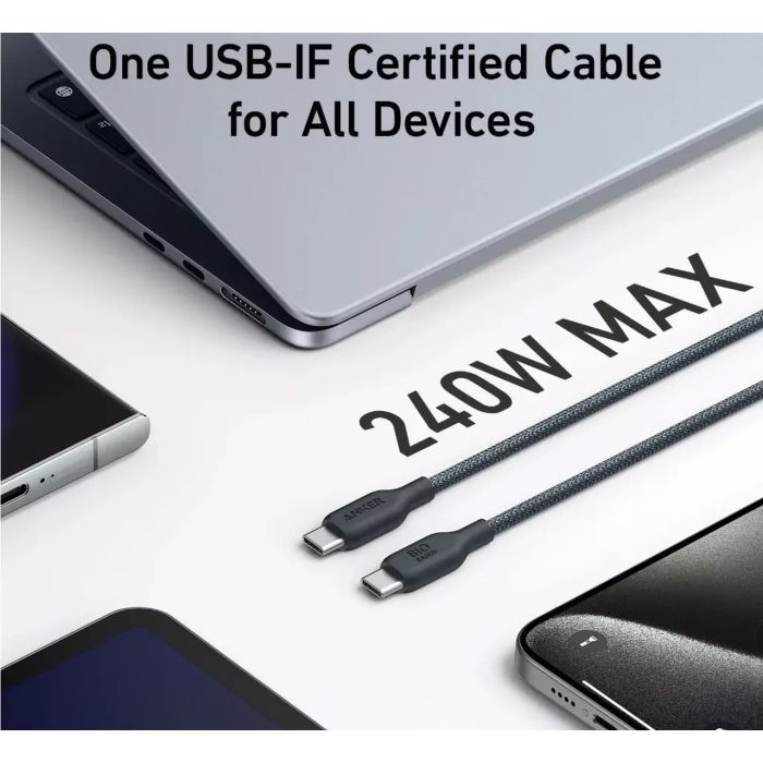 كيبل شحن ونقل بيانات 240 واط Type-C إلى Type-C بطول 3 متر من Anker