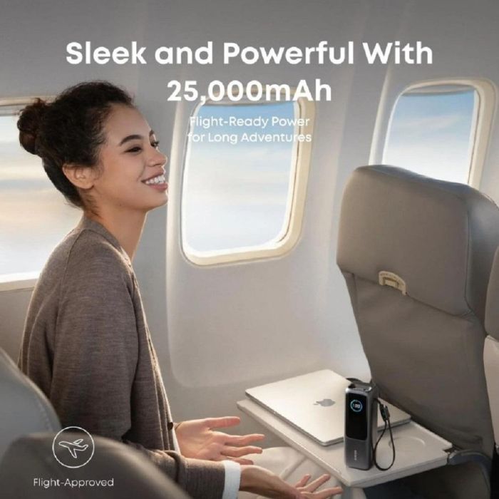 كن على اتصال دائم أينما كنت مع البطارية الاحتياطية من Anker. بفضل سعتها الكبيرة 25000 مل أمبير، فهي توفر طاقة كافية لشحن أجهزتك لفترات طويلة دون الحاجة إلى منافذ كهربائية. مزودة بمنفذ USB-C، منفذ USB-A وكيبلات ثنائية، مما يوفر قوة تصل إلى 165 واط، كما يُمكن لهذه البطارية شحن عدة أجهزة في آنٍ واحد، بما في ذلك أجهزة اللابتوب والهواتف والتابلت