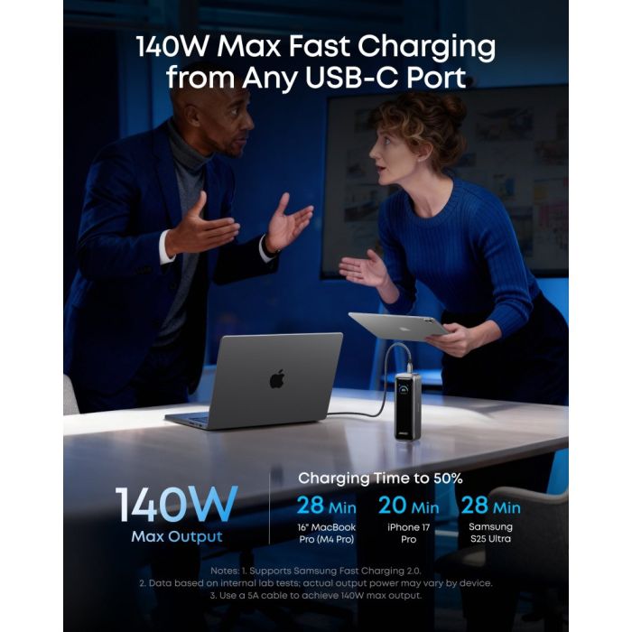 - شحن USB-C حتى 140 واط مناسب للابتوب