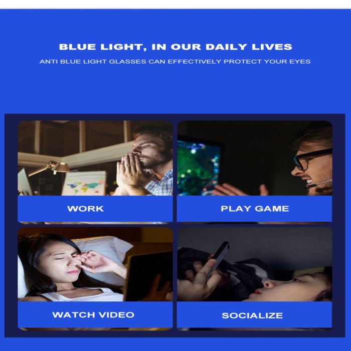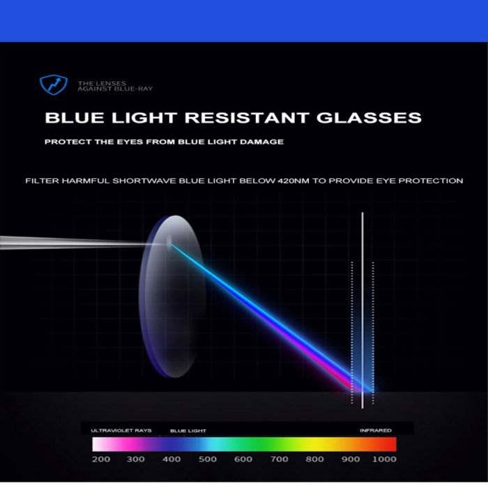 نظارات حديثة تحمي العينين من الأشعة الزرقاء المنبعثة من الشاشات وتقلل إجهاد العين والصداع الناتج عن الاستخدام الطويل.