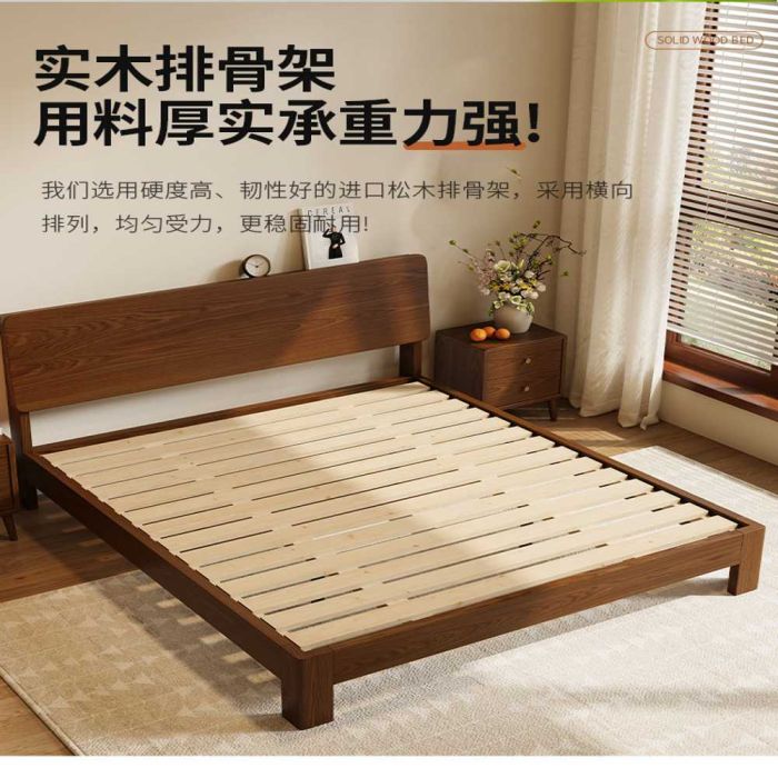 سرير من الخشب الصلب بتصميم عتيق مصنوع من خشب طبيعي متين بتشطيب كلاسيكي، يمنح الغرفة إحساساً بالدفء والفخامة، هيكل قوي وألواح ثابتة، لوح رأس مريح بزاوية ميل مدروسة ولمسة تراثية أنيقة تدوم