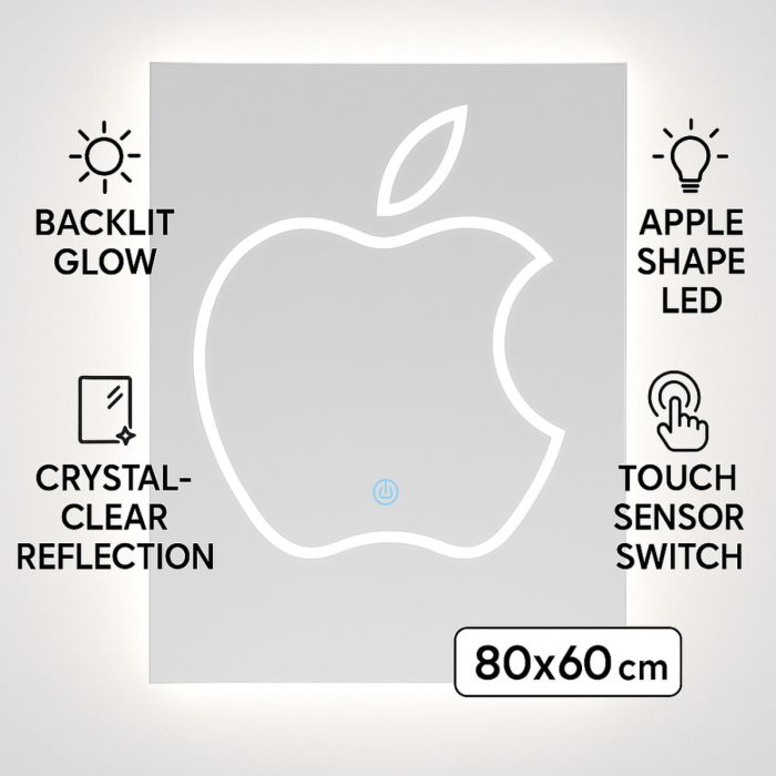 - مرآة LED بتصميم Apple مع مفتاح لمس 60 × 80 سم