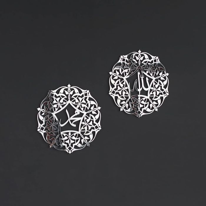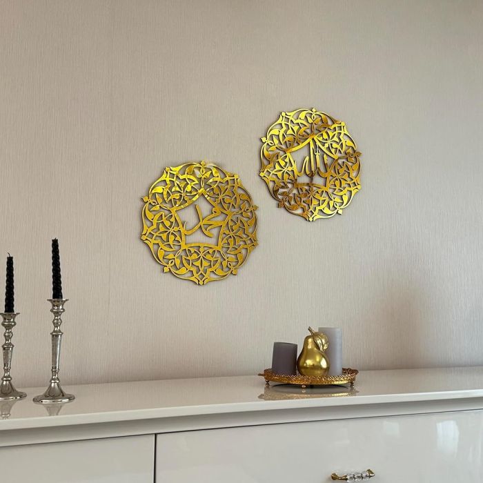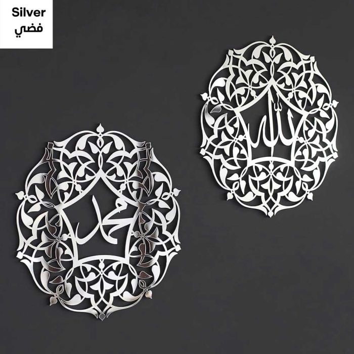 لوحة جدارية إسلامية اسم الله (سبحانه وتعالى) ومحمد (صلى الله عليه وسلم) بالخط العربي من الأكريليك 60 × 60 سم