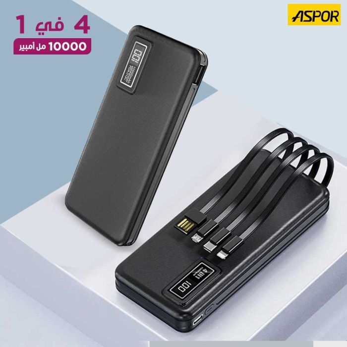 - بطارية احتياطية 10000 مل أمبير 4 في 1 مع كيبلات مدمجة من ASPOR