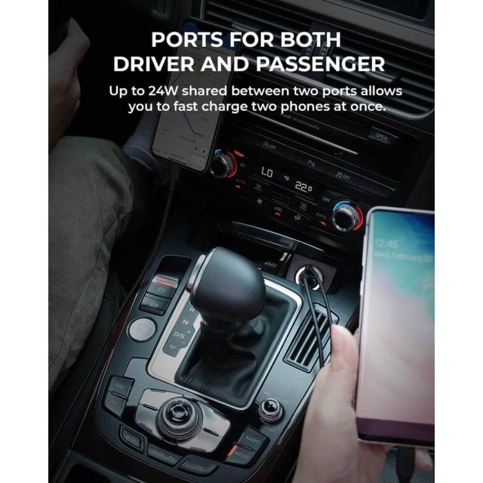 - الشحن المزدوج: توزيع 24 واط بين المنفذين لشحن جهازين في وقت واحد