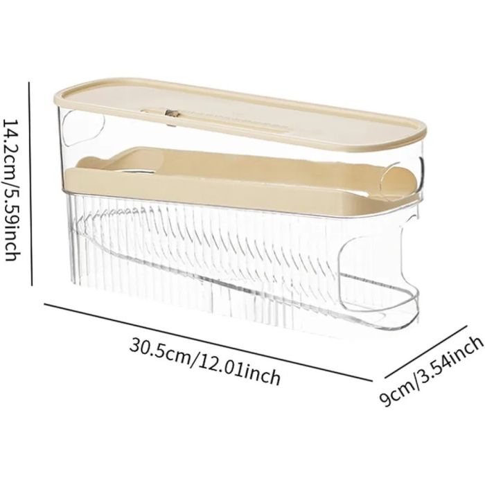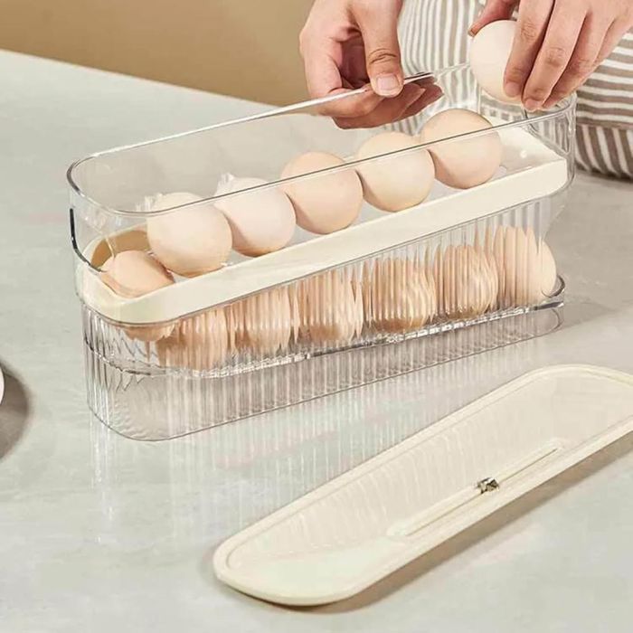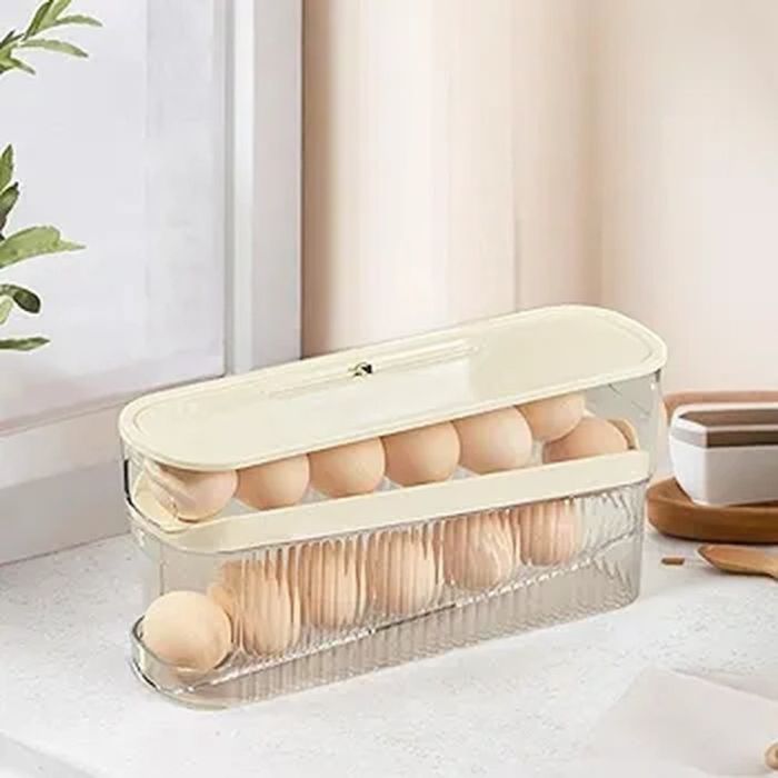 اجعل الوصول للبيض أسرع وأذكى. مع آلية التدحرج التلقائي والتصميم النحيف الذي يناسب باب الثلاجة، ستوفر مساحة كبيرة وتضمن سلامة البيض من الكسر. تصميم قابل للتكديس يمنحك سعة تخزين مضاعفة دون فوضى.