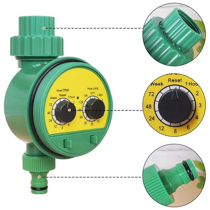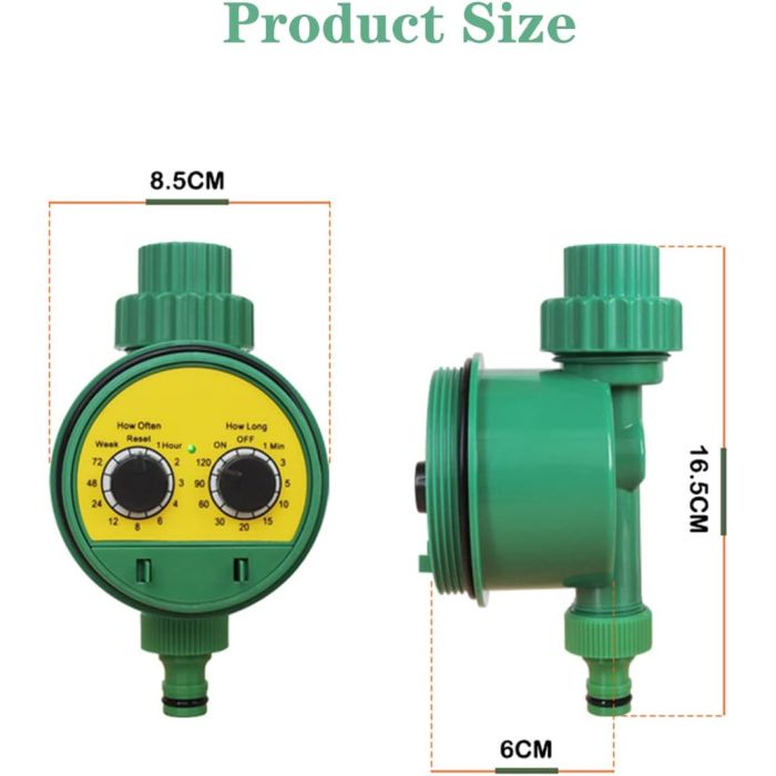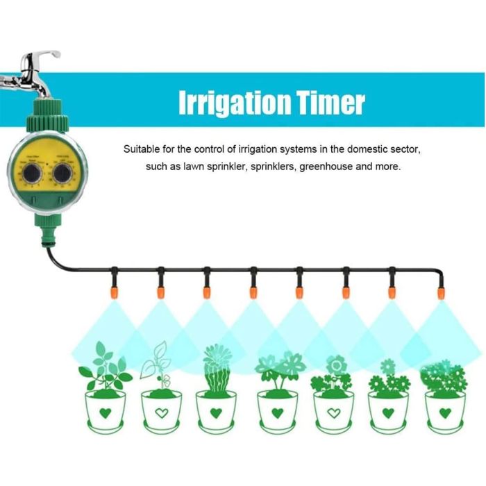 تخلص من القلق بشأن ري حديقتك مع مؤقت الري الرقمي الأوتوماتيكي. يتيح لك نظام الري الذكي هذا ضبط دورة الري (من 1 إلى 3 أيام) ومدة الري (من 1 إلى 120 دقيقة) بسهولة، للحفاظ على صحة ونضارة نباتات حديقتك، عشبك، أو شرفتك حتى عند السفر.