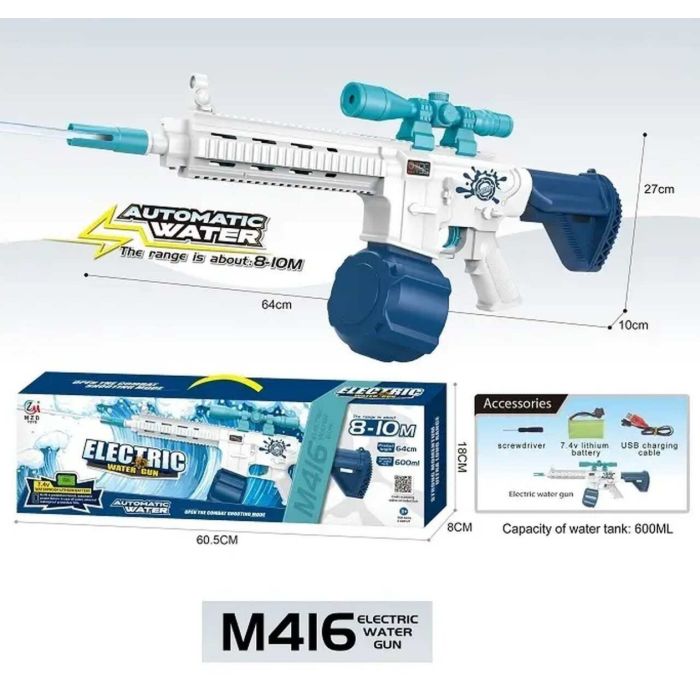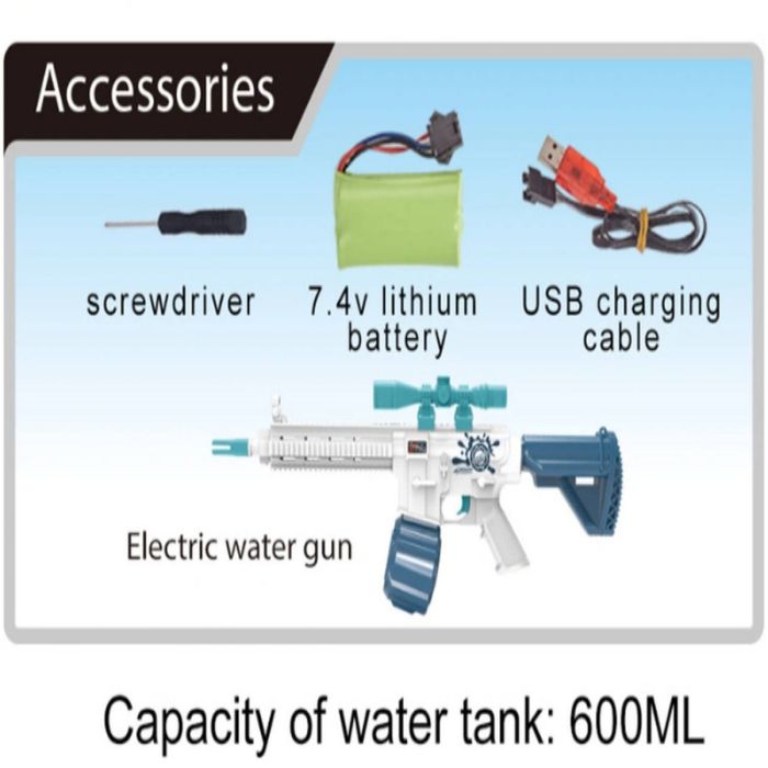 - لعبة مسدس الماء الكهربائي الأوتوماتيكي مع بطارية قابلة لإعادة الشحن