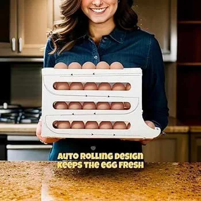 احتفظ ببيضك طازجا ومنظما وسهل الوصول إليه مع صندوق تخزين البيض الدوار المبتكر هذا! مصمم للثلاجات، يضمن لك نظام الدوران التلقائي استخدام أقدم البيض أولا دائما، مما يقلل من النفايات. متين وصغير الحجم وسهل التنظيف، صندوق تخزين البيض هذا ضروري لكل مطبخ. قم بتحديث تخزين الثلاجة اليوم!