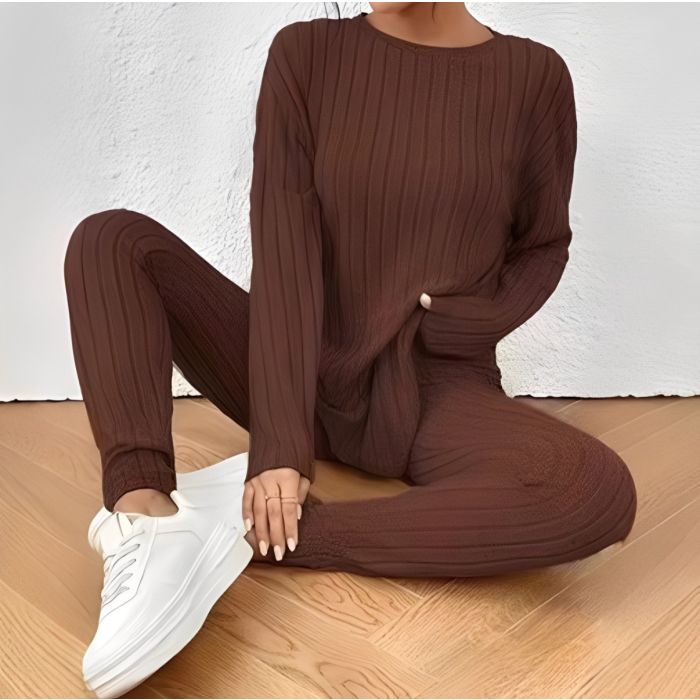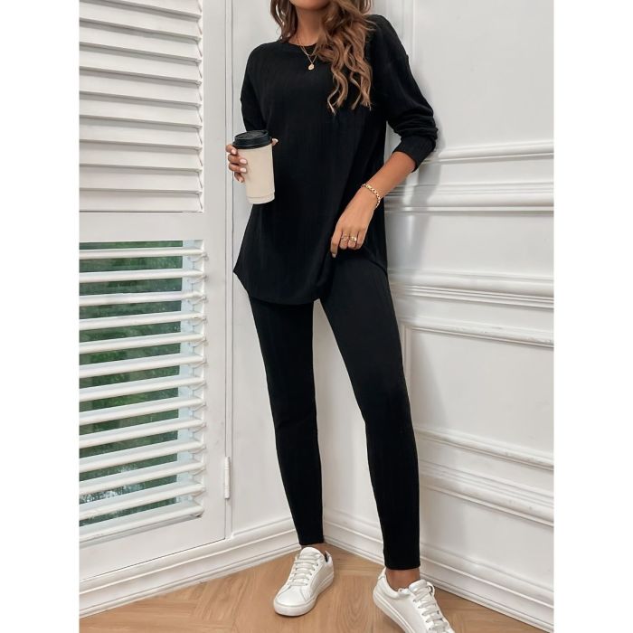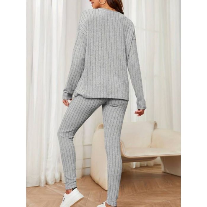 - طقم خريفي مضلع فضفاض بياقة دائرية وأكمام طويلة للسيدات