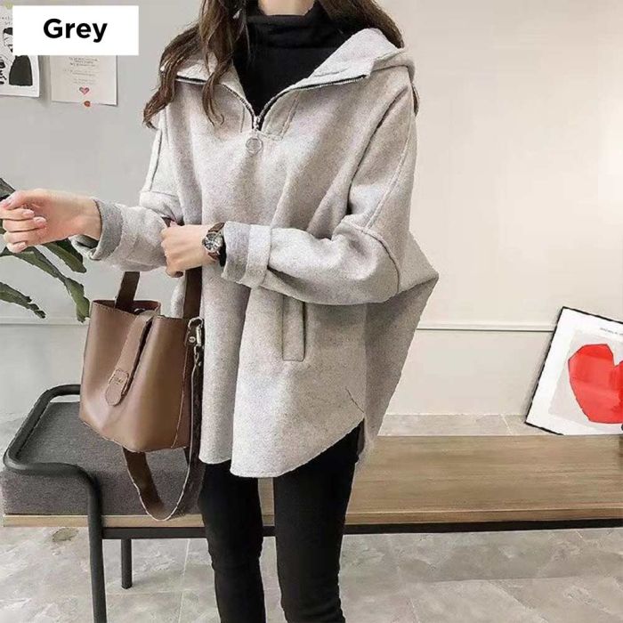 سويت شيرت خريفى بسحاب أمامى وغطاء رأس للسيدات