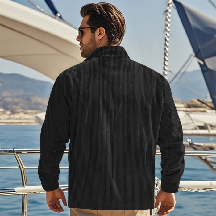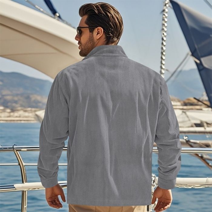 - قميص خريفي مخملي بياقة رفيعة وأكمام طويلة للرجال