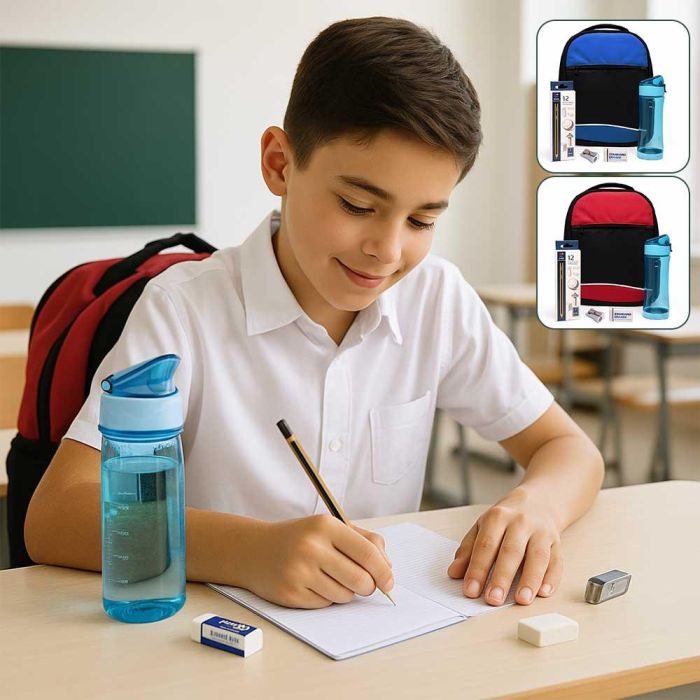 صُممت هذه المجموعة المتكاملة للعودة إلى المدرسة بعناية فائقة لتغطي احتياجات الدراسة اليومية. تتميز بحقيبة ظهر متينة، وزجاجة مياه قابلة لإعادة الاستخدام، وأقلام رصاص عالية الجودة، ومبراة متينة، وممحاة ناعمة - إنها المجموعة المثالية للطلاب من جميع الأعمار. سواءً للاستخدام الشخصي أو للتبرع، تضمن هذه المجموعة لكل طالب بدء العام الدراسي بالأدوات اللازمة للنجاح.