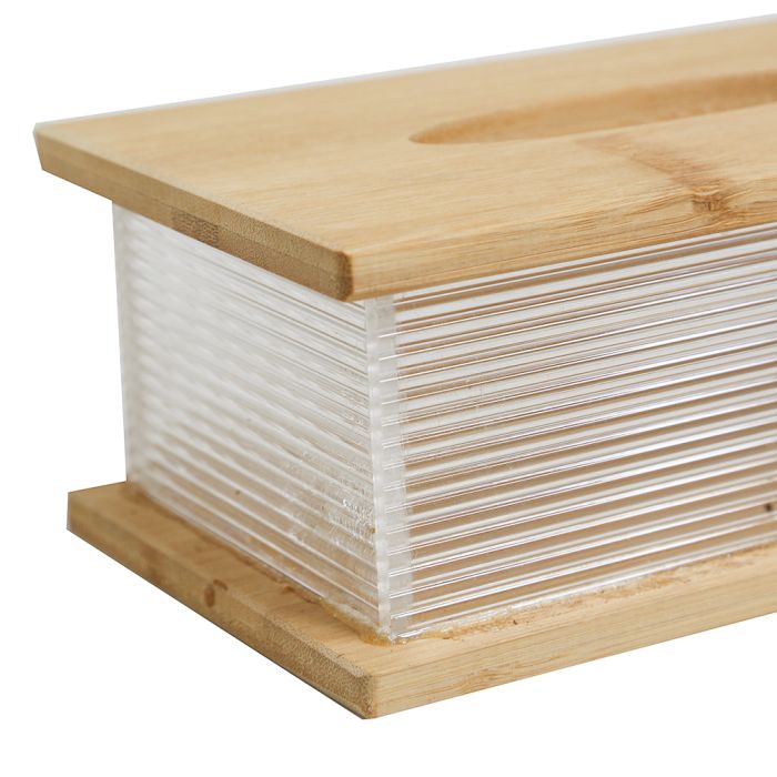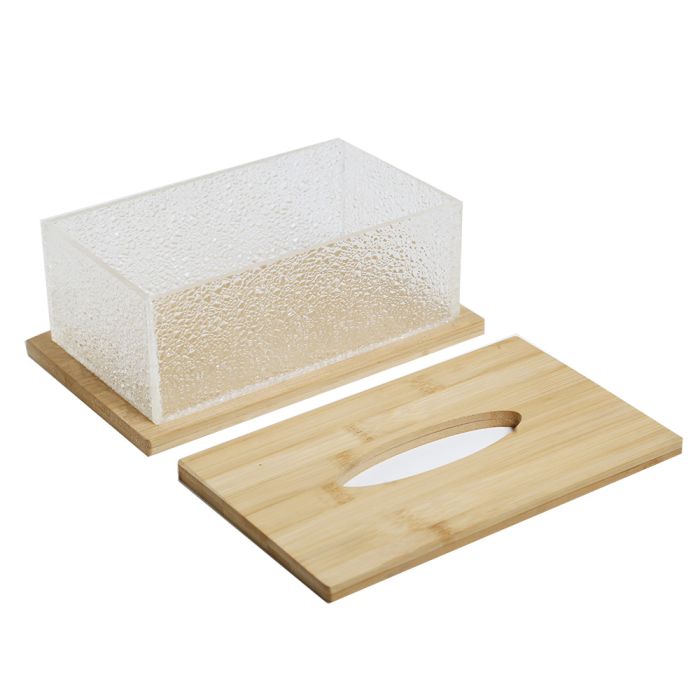إضافة أنيقة وعملية لديكور منزلك، تمزج علبة المناديل المصنوعة من البامبو والأكريليك بسلاسة بين العناصر الطبيعية والحديثة. مصنوعة من البامبو الصديق للبيئة والأكريليك الأنيق، يعزز غطاء علبة المناديل هذه جمال أي غرفة مع توفير سهولة الوصول إلى المناديل.