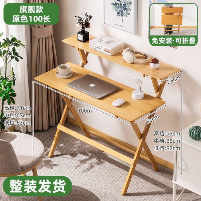 - طاولة دراسة قابلة للطي من خشب البامبو برف علوي قابل للتعديل 100×38×93 سم