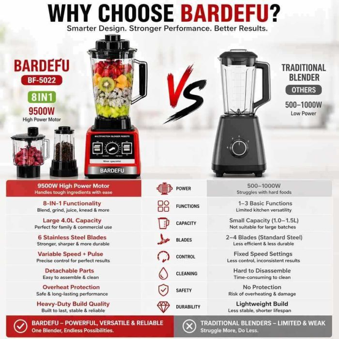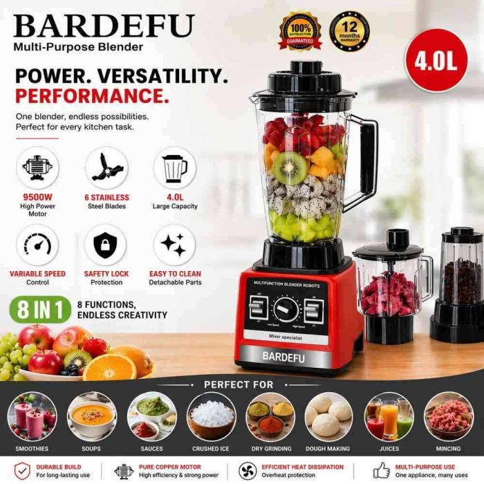 خلاط متعدد الاستخدامات 4 لتر قوة 9500 واط 8 في 1 من BARDEFU