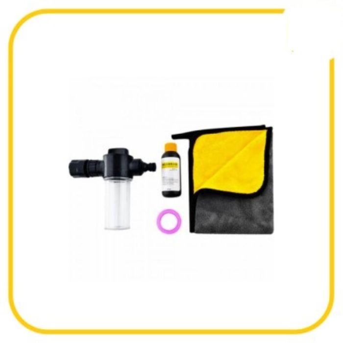 توفر لك طريقة سهلة وسريعة للحفاظ على سيارتك نظيفة ولامعة. تحتوي المجموعة على بخاخ رغوة لتركيب سائل الغسيل، قطعة قماش للتلميع، وشريط لحماية المفاصل من التسرب. تصميم يضمن توزيع الرغوة بالتساوي مع الحد من ملامسة يديك مباشرة لسائل الغسيل