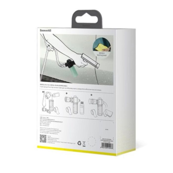 - طقم غسيل سيارات مع مسدس رغوة، قماش تلميع وشريط لاصق من Baseus