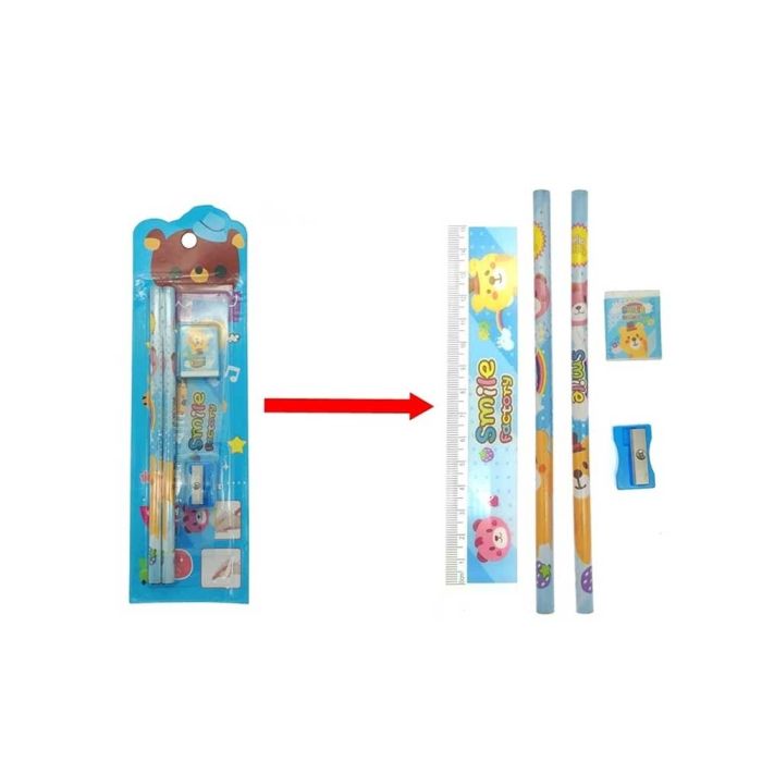 طقم الأدوات المكتبية بتصميم الدب يحتوي على 5 قطع أساسية للكتابة والرسم، ويتميز برسومات جذابة تضيف لمسة مرحة إلى يوم الطفل الدراسي. يشمل الطقم قلمين رصاص، ممحاة، مسطرة، ومبراة، جميعها بتنسيق متناسق ومريح للاستخدام اليومي. مثالي للمدرسة أو كهدية للأطفال، ويجمع بين الجودة والتصميم المرح.