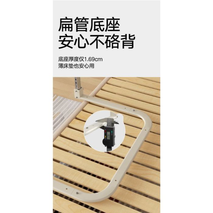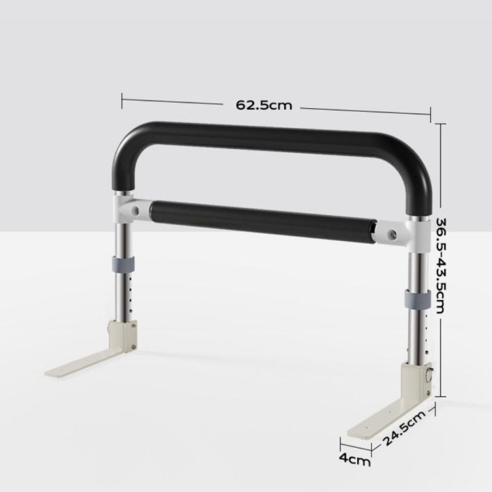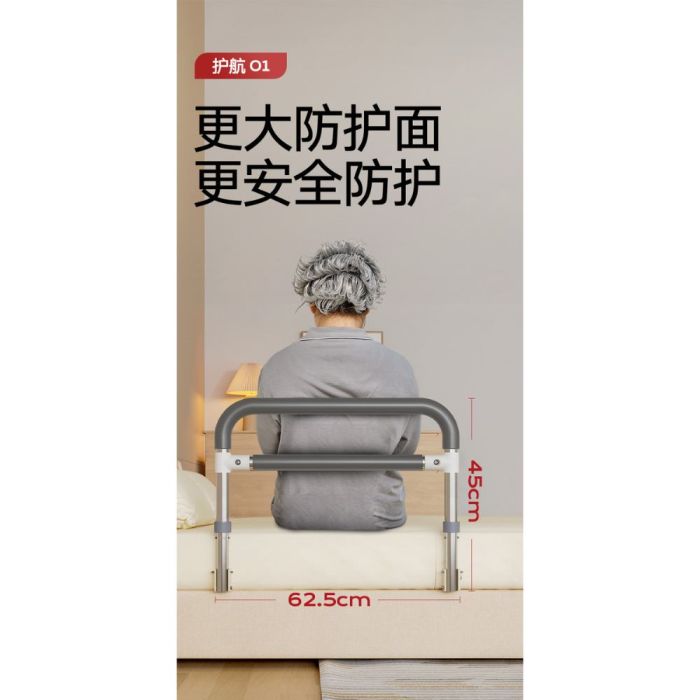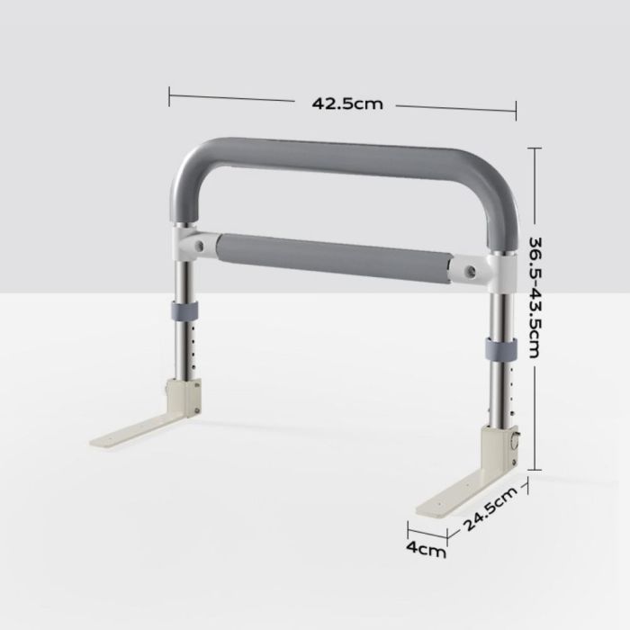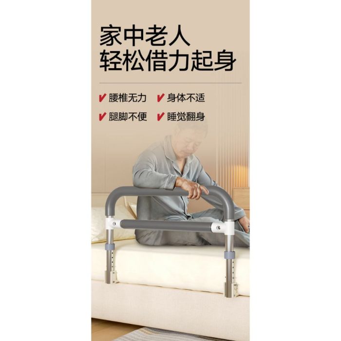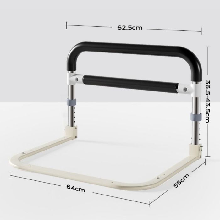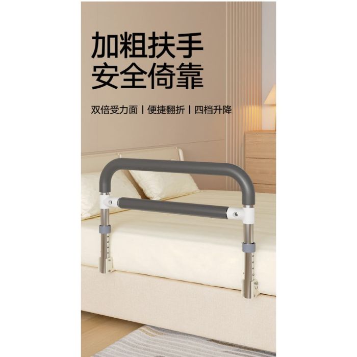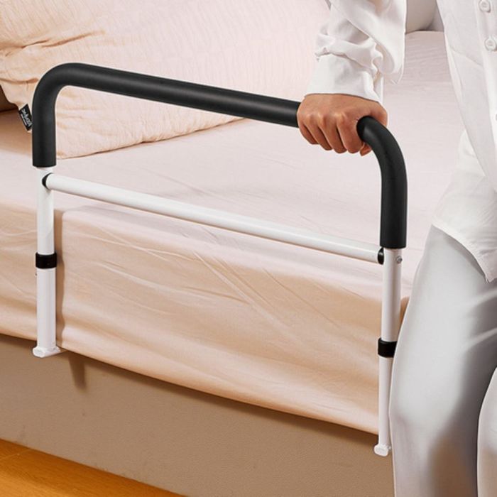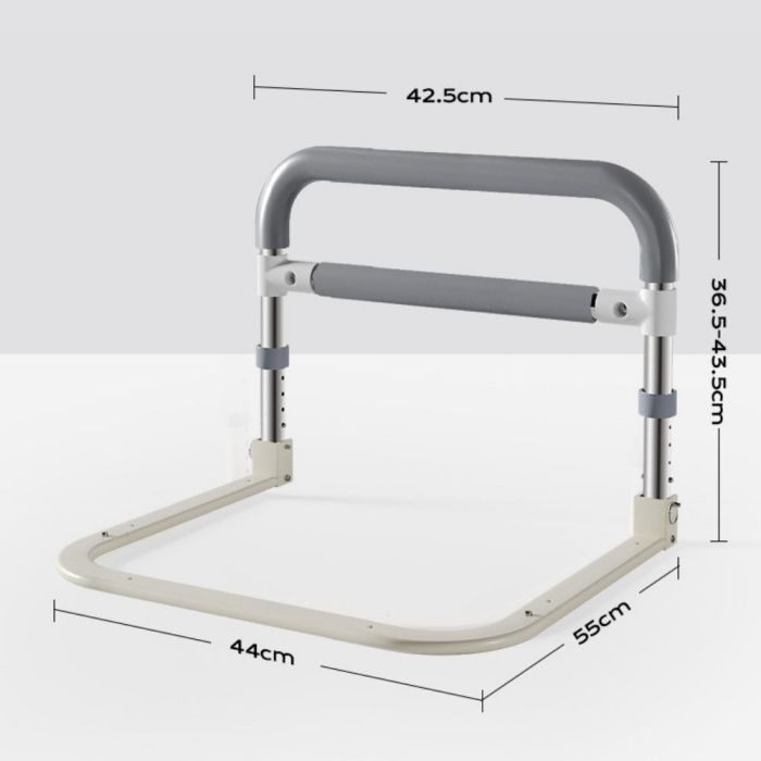مسند جانبي لحافة السرير مانع للسقوط مصنوع من فولاذ مقاوم للصدأ، يوفر دعمًا ثابتًا عند النهوض، مع مقبض مريح يساعد على التوازن ويمنح شعورًا بالأمان والاطمئنان أثناء الحركة داخل المنزل