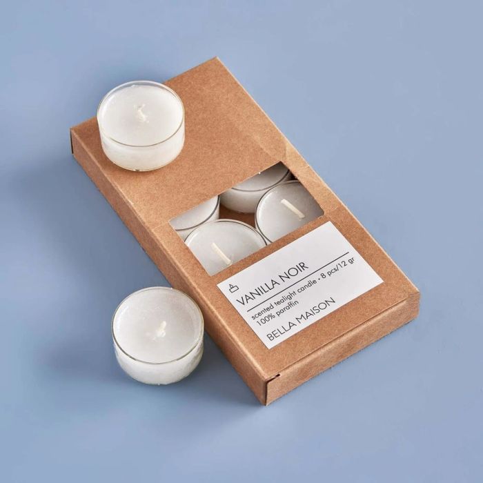 - مجموعة شموع صغيرة بالفانيليا السوداء 8 حبة من Bella Maison