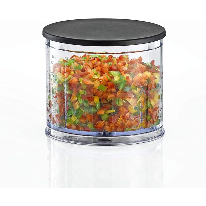 - وعاء تقطيع سعة 600 مل لتحضيرات الطعام ودورق سعة 500 مل