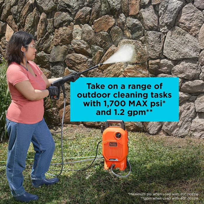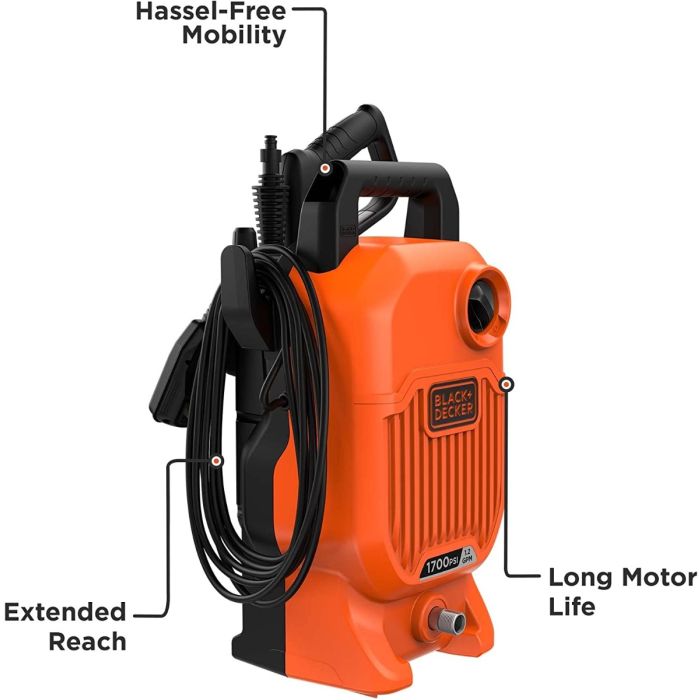 - ماكينة تنظيف 1700 PSI سعة 1.2 جالون في الدقيقة من Black & Decker
