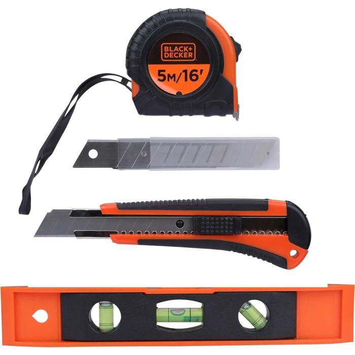 بلغني عند التوفرمجموعة أدوات بلاك آند ديكر اليدوية للمنزل والمكتب مجموعة أدوات مخصصة مصممة خصيصًا للمحترفين أو الفنيين. تتلاءم جميع قطع هذا الطقم بشكل آمن مع حقيبة حمل متينة لسهولة التنظيم والتخزين.