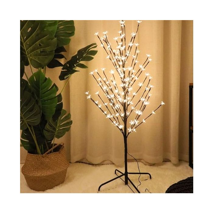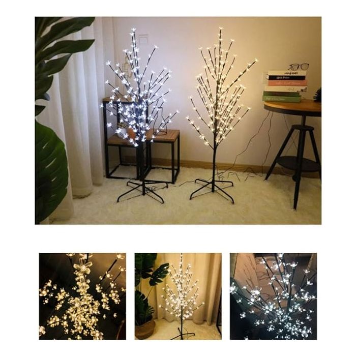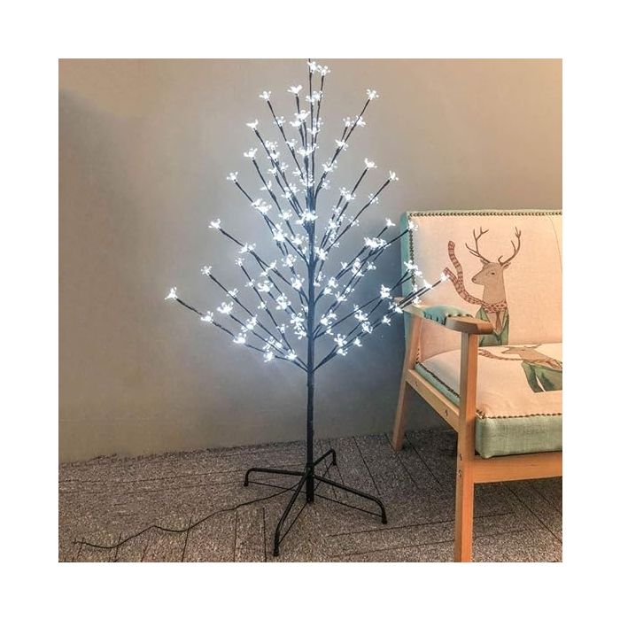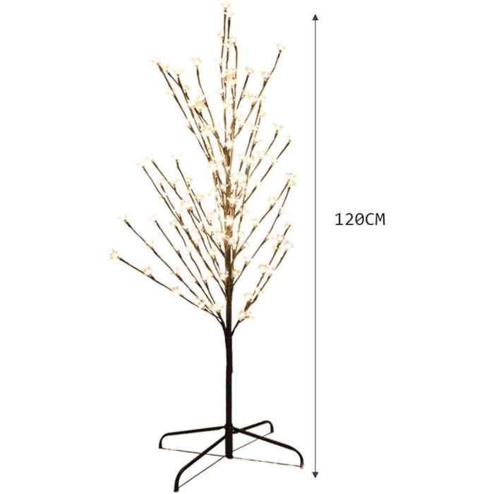 شجرة ديكور LED هذه مثالية للديكور الداخلي والخارجي مع 200 مصباح LED لإضاءة محيطك ببتلات بلاستيكية شفافة لجميع أنواع الديكورات. المنتج مصنوع من البلاستيك والمعدن. يأتي المنتج بقاعدة معدنية متينة لتحقيق ثبات أفضل. يصل ارتفاعه إلى 150 سم.