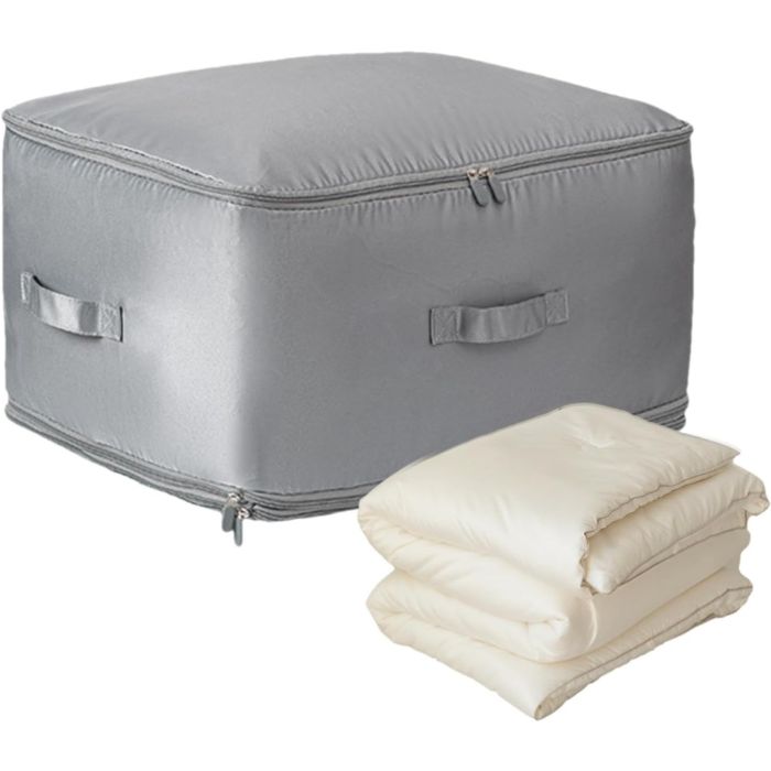 نظّم بطاطينك وألحفتك بسهولة مع حقيبة التخزين الواسعة والمتينة. مصنوعة من قماش ساتان ناعم لحماية الأقمشة من الأتربة والبقع وتوفير مساحة إضافية في المنزل