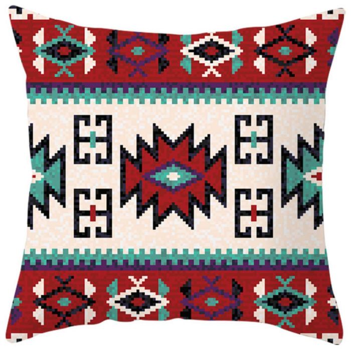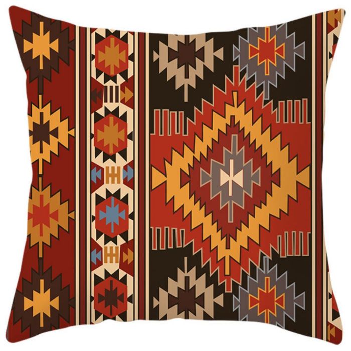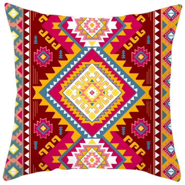 - غطاء وسادة بوهيمي ملون بنقوش هندسية