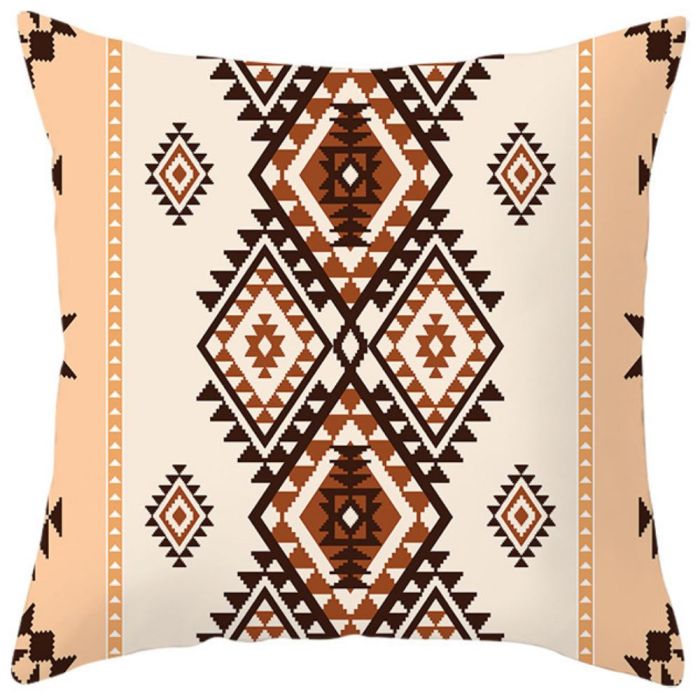 غطاء وسادة بوهيمي هندسي ملون مصنوع من بوليستر ناعم، بتصميم تراثي لافت يضيف لمسة دافئة للمكان، مريح للاستخدام اليومي، خفيف وسهل التنسيق، يمنح الأجواء طابعًا فنيًا أنيقًا ويحافظ على جودته مع الاستعمال