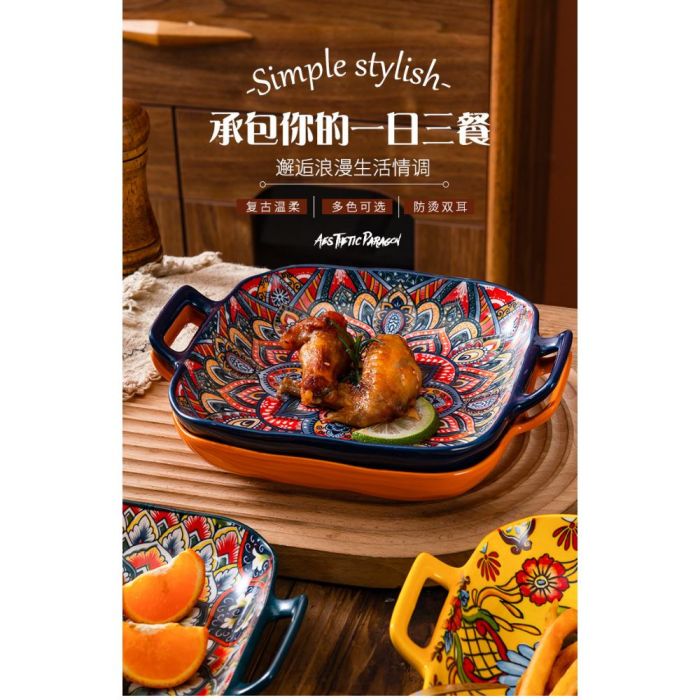 - شكل مربع مع أذنين جانبيتين يعزز سهولة الحمل والتقديم