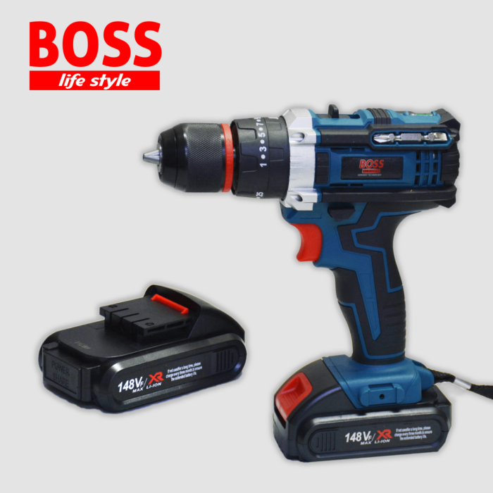 - محتويات العلبة: مثقاب لاسلكي بوس 148 فولت