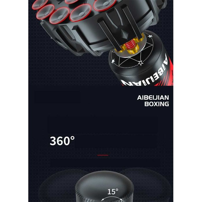 كيس ملاكمة للتدريب مزوّد بقاعدة قابلة للتعبئة بالماء أو الرمل، نظام تخميد 360° مزدوج ونوابض رباعية يقلل الاهتزاز ويعزّز الثبات، جلد PU عالي الجودة بطبقات مرنة، مناسب لمختلف الأرضيات والاستخدامات.