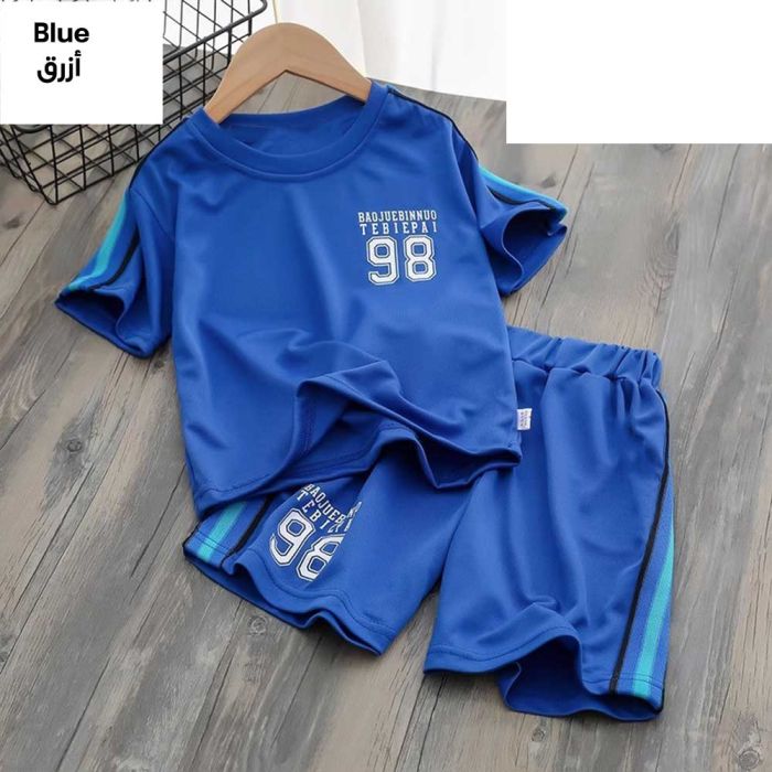 - طقم تيشيرت وشورت رياضي شبكي بملمس حرير ثلجي للأولاد