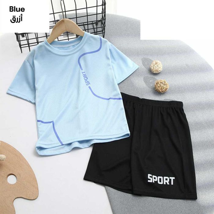 - طقم تيشيرت وشورت رياضي شبكي بملمس حرير ثلجي للأولاد