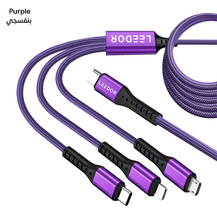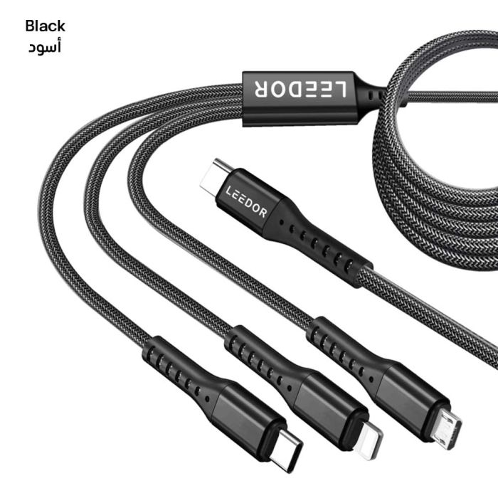 - كابل شحن مضفر 3 في 1 بقوة 60 واط بطول 3 متر من LEEDOR