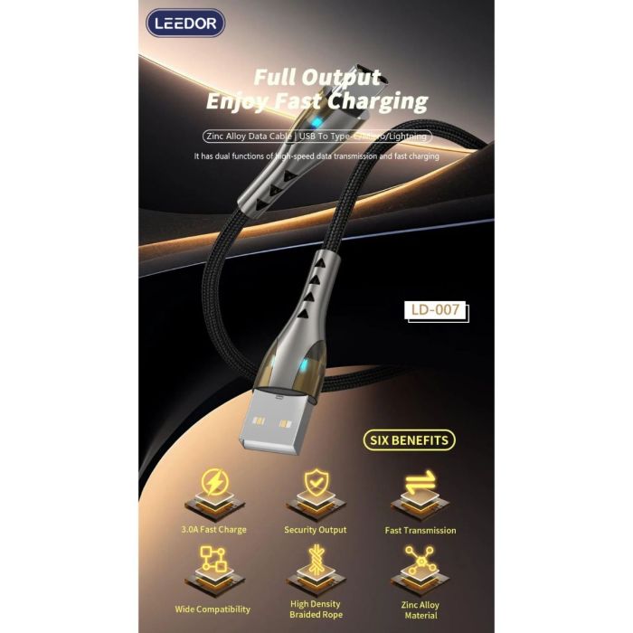 - كابل شحن مضفر بطول 1 متر من LEEDOR