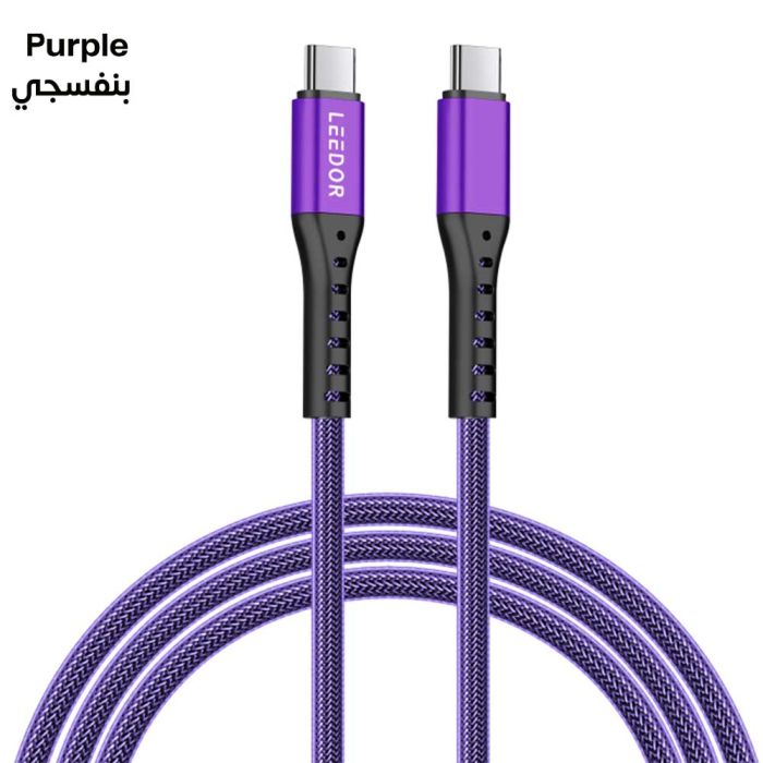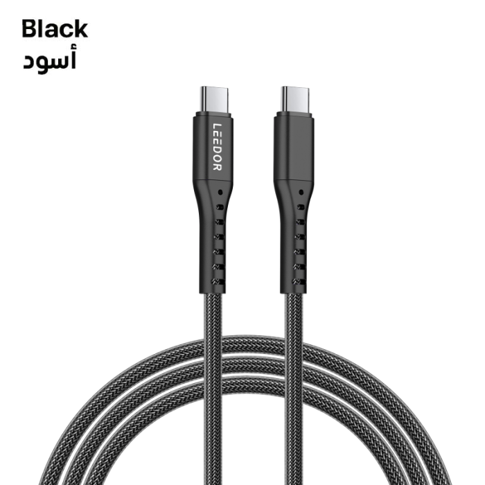 - كابل شحن مضفر من Type-C إلى Type-C قوة 60 واط بطول 1.2 متر من LEEDOR