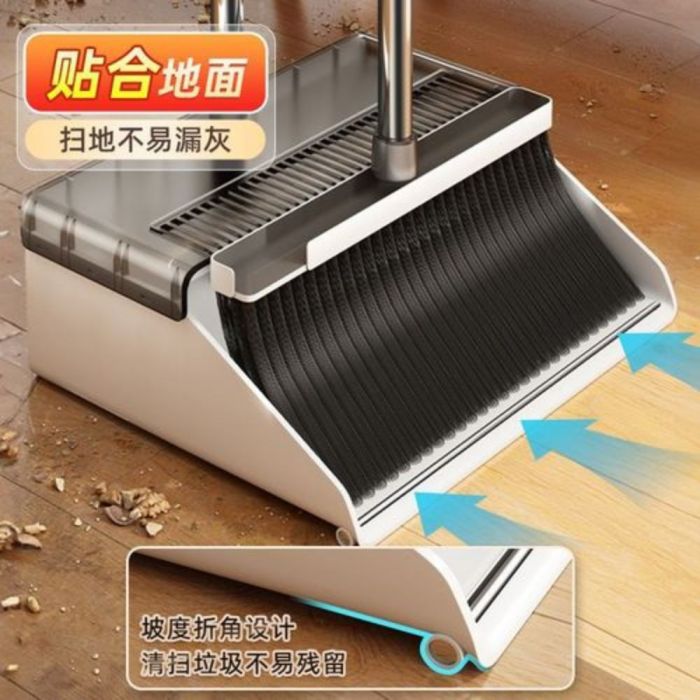 - طقم مكنسة مع مجرفة بعصا طويلة
