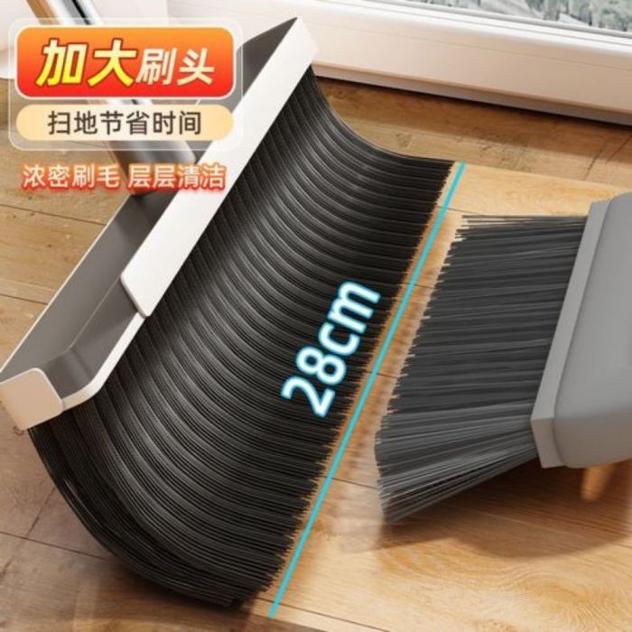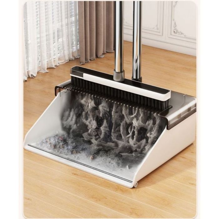 طقم مكنسة مع مجرفة بعصا طويلة مصنوع من خامات متينة، بتصميم أنيق يسهل تنظيف الأرضيات دون انحناء، مزود بشعيرات كثيفة تجمع الأتربة بكفاءة، ويساعد على الحفاظ على جودته وترتيب المكان