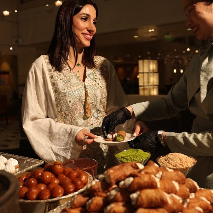 احتفل بفرحة العيد مع بوفيه برانش شرقي شهي، مُعدّ خصيصاً للعائلة والأصدقاء. استمتع بتشكيلة واسعة من الأطباق التقليدية المفضلة، وتجارب طهي مباشرة، وأجواء مفعمة بالحيوية، بالإضافة إلى فقرات ترفيهية ممتعة للأطفال.