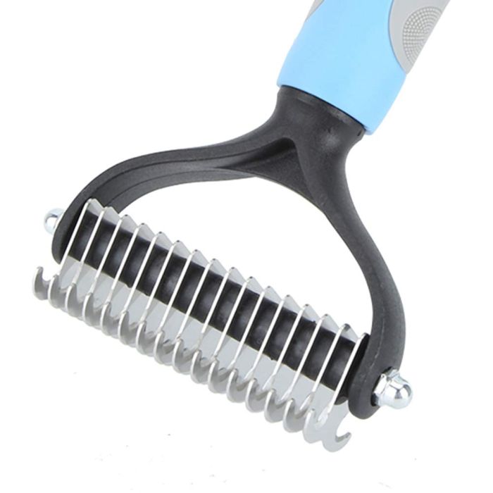 - فرشاة الكلاب المخصصة لتساقط الشعر تتميز بشفرات صلبة تعالج عقد الشعر الصعبة بسرعة وفعالية مع الحفاظ على طول الشعر.
