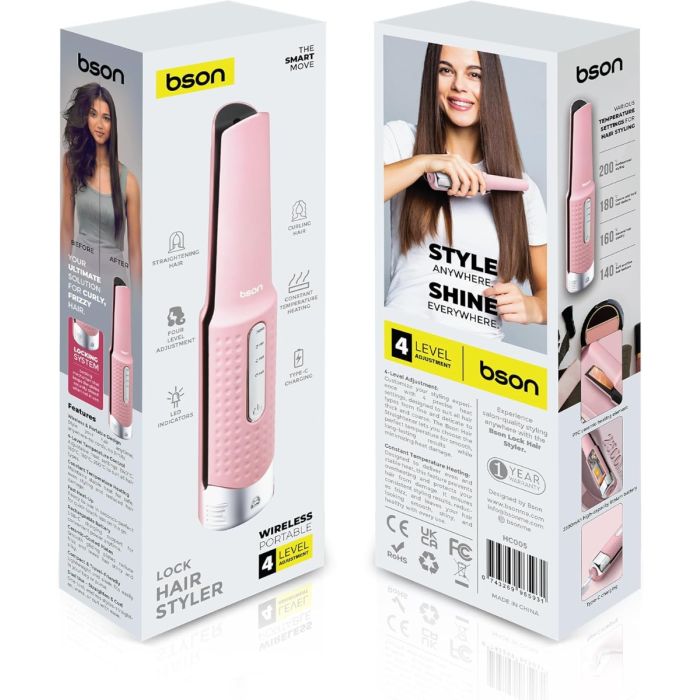 يقدم جهاز Bson Lock Hair Styler تجربة تصفيف متكاملة بفضل تصميمه 2 في 1 الذي يعمل كمملس ومجعد للشعر في نفس الوقت. يتميز الجهاز بأنه لاسلكي بالكامل، مما يمنحك حرية الحركة وسهولة الاستخدام سواء في المنزل أو أثناء التنقل. بتقنية الشحن السريع Type-C ليكون دائمًا جاهزًا للاستخدام دون انتظار طويل. ويضيف قفل الأمان المدمج حماية إضافية أثناء التخزين أو السفر، ويمنع فتح الجهاز بشكل غير مقصود داخل الحقيبة.