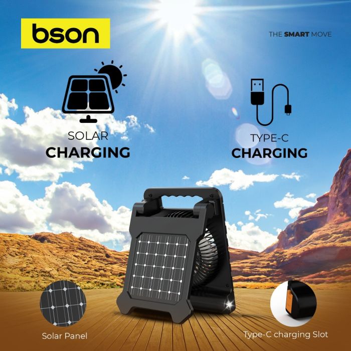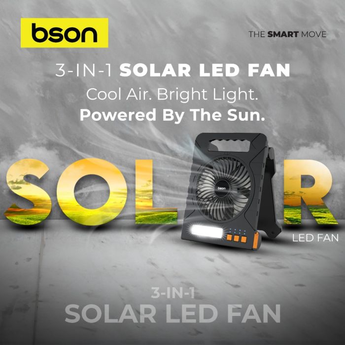 - مروحة 3 في 1 بالطاقة الشمسية مع أضاءة LED وبطارية احتياطية
