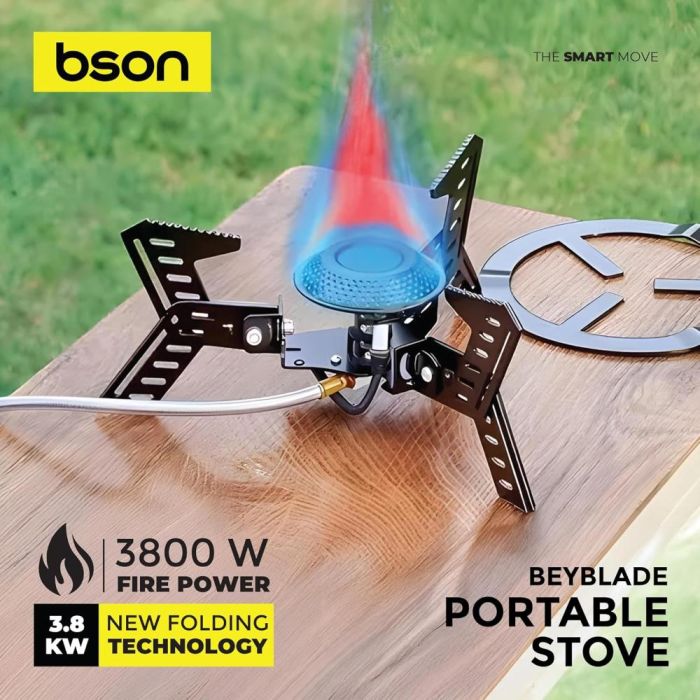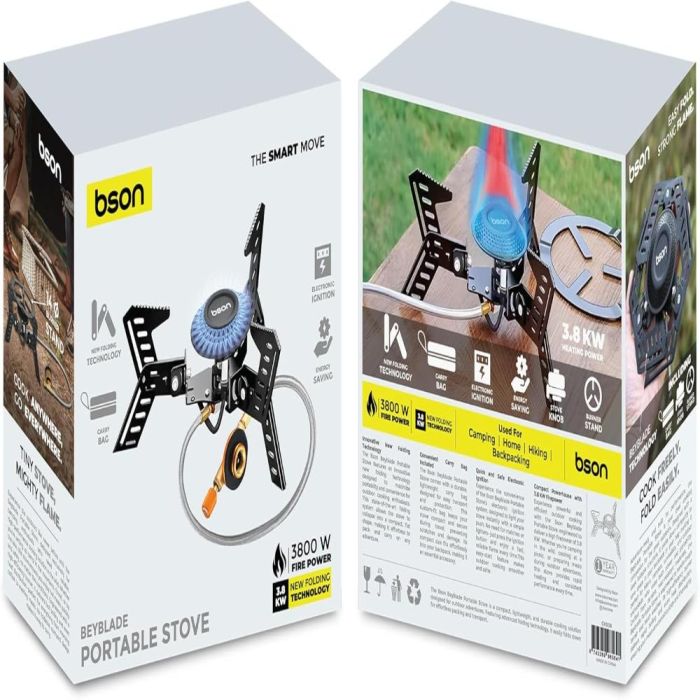 موقد Bson Bayblade المحمول يوفر حرارة قوية تصل إلى 3800 واط لطهي سريع وفعال، سواء لغلي الماء أو القلي السريع. تصميمه القابل للطي يجعل من السهل نقله وتخزينه في أي مكان، مع الحفاظ على الثبات والأمان أثناء الاستخدام. قاعدة الموقد قياس 14 سم تدعم معظم الأواني بشكل آمن لضمان توزيع الحرارة بكفاءة.