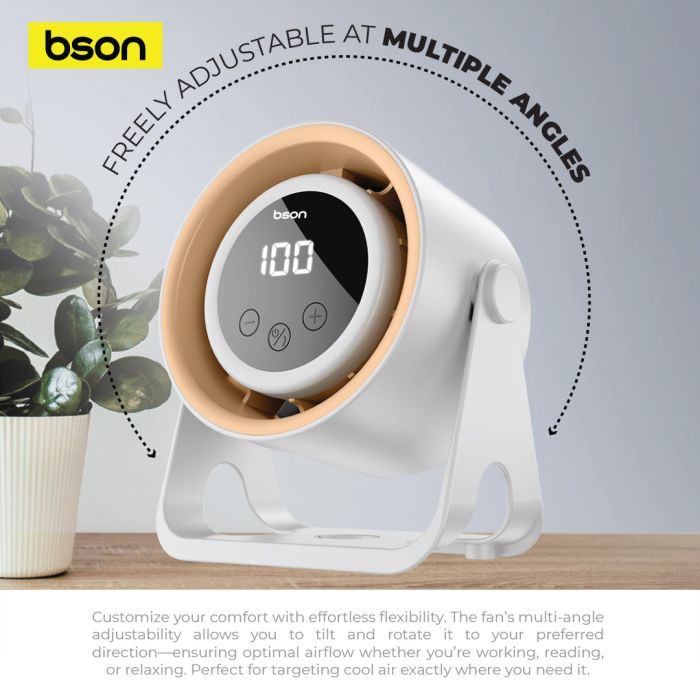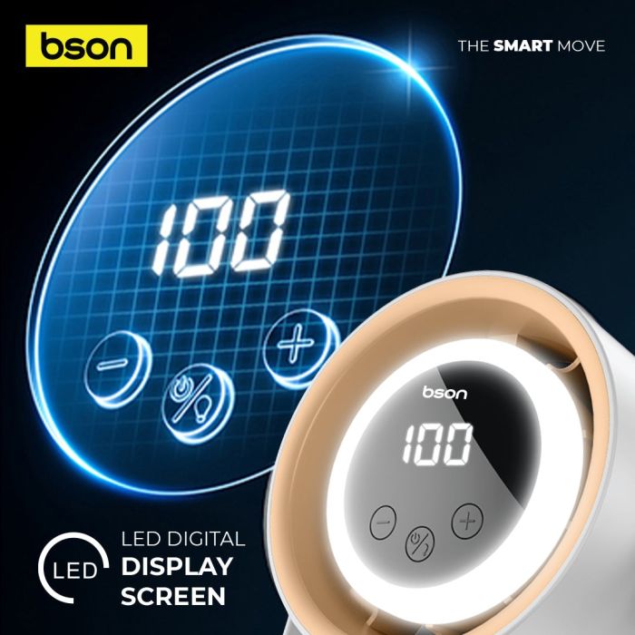 تمنحك مروحة Bson Halo Breeze تجربة تبريد مريحة بفضل تصميمها 2 في 1 الذي يجمع بين دوران الهواء وإضاءة ليلية خافتة تضيف لمسة مهدّئة للمكان. تعمل بهدوء شديد حتى في أعلى السرعات، مما يجعلها مثالية لغرف النوم والمكاتب وأماكن الدراسة. يتيح لك نظام التحكم المتعدد ضبط 5 مستويات للهواء للحصول على تدفق يناسب احتياجاتك اليومية. كما تأتي بشاشة LED ديجيتال تعرض سرعة الهواء ووضع التشغيل بوضوح