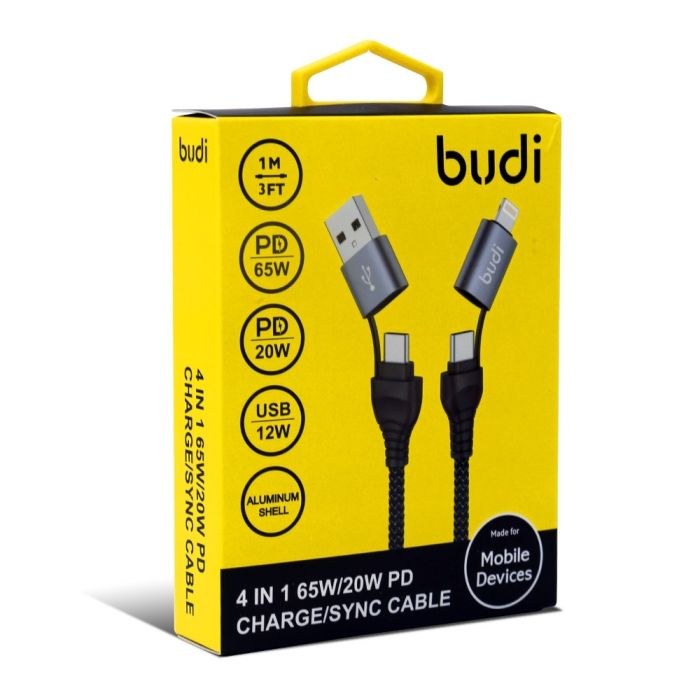 - بودي - كيبل 4 في 1 بقوة 20 / 65 واط للشحن والمزامنة 1 متر